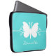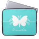 Doce e simples Borboletas Roda Bolsa de laptop em aqua com uma bela silhueta de borboleta e borda de espiral. Esta bolsa de eletrônicos adorável pode ser personalizada com o texto personalizado de sua escolha. Esta manga bonito de borboleta é gira e na moda e perfeita para proteger seu computador! Clique no botão "Personalizar" para obter opções adicionais de personalização.