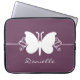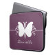 Bela e simples borboletas Roda Bolsa de laptop em roxo de beringela com uma bela silhueta de borboleta e borda de espiral. Esta bolsa de eletrônicos adorável pode ser personalizada com o texto personalizado de sua escolha. Esta manga bonito de borboleta é gira e na moda e perfeita para proteger seu computador! Clique no botão "Personalizar" para obter opções adicionais de personalização.