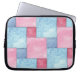 Uma manga protetora atraente para o seu laptop, com uma manta de retalhos de padrão de denim rosa e azul, de um design de watecolor pintado à mão por Judy Adamson.