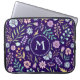 Padrão floral de vassoura, cores ousadas, design floral de tendência. Flores, folhas, gomos e bagas. Rosa, azul, verde, ouro (cor), roxo e laranja. O fundo azul escuro faz as flores pop. Azul escuro + monograma azul claro.