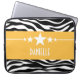 Tendy e moderna Bolsa de laptop de Zebra Sassy Star com um fundo de impressão em branco e preto chico e uma borda amarela ousada adornada com um divertido motivo de estrela. Esta manga é perfeita para proteger seu dispositivo com estilo! Este design feminino pode ser personalizado com o texto personalizado de sua escolha. Clique em "Personalizar" para encontrar mais opções de personalização.