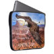Bolsa de laptop com imagem de uma águia careca voando sobre Monument Valley no nascer do sol, com seus textos personalizados (opcional).