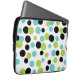 Um padrão de bolinhas preto e limão de turquesa decora esta bolsa de laptop. Esta bolsa de laptop é excelente para mulheres, homens, meninos, meninas, adolescentes, faculdade, segundo grau, escola, professores, estudantes, negócios etc... A design é de arte original.