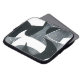 Uma Bolsa de laptop muito distinta em um padrão preto, cinza e branco de 'lâminas', de um design de tela impresso por Judy Adamson.