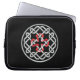 Uma Bolsa de laptop Celta Vermelha Névoa com design de Nó Celta com uma cruz quadrada vermelha no centro.