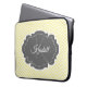 Proteja seu laptop com uma Bolsa de laptop personalizada Chevron amarela. A design de bolsa de laptop apresenta um fundo de fevron amarelo e uma etiqueta de cinza de ornamentado para personalizar com seu nome e monograma. Itens adicionais disponíveis com este design também. Entre em contato comigo diretamente para obter assistência com a personalização.
