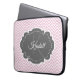 Proteja seu laptop com uma Bolsa de laptop personalizada Chevron rosa. A design de bolsa de laptop apresenta um fundo de fevron rosa e uma etiqueta de cinza de ornamentado para personalizar com seu nome e monograma. Itens adicionais disponíveis com este design também. Entre em contato comigo diretamente para obter assistência com a personalização.