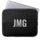 Você pode personalizar o monograma de prata que está no centro desta bolsa de laptop preta.