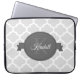 Proteja o seu laptop com uma Bolsa de laptop personalizada de folha de Cinza. A design de bolsa de laptop apresenta um simples fundo quatrefoil e um emblema de rico para personalizar com seu nome e monograma. Itens adicionais disponíveis com este design também. Entre em contato comigo diretamente para obter assistência com a personalização.