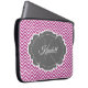 Proteja seu laptop com uma Bolsa de laptop personalizada magenta Chevron. A design de bolsa de laptop ornamentado apresenta um plano de fundo e uma etiqueta de cinza magenta para personalizar com seu nome e monograma. Itens adicionais disponíveis com este design também. Entre em contato comigo diretamente para obter assistência com a personalização.