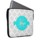 Proteja o seu laptop com uma Bolsa de laptop personalizada Turquesa Quatrefoil. A design de bolsa de laptop apresenta um simples fundo quatrefoil e um emblema de rico para personalizar com seu nome e monograma. Itens adicionais disponíveis com este design também. Entre em contato comigo diretamente para obter assistência com a personalização.