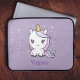 Uma Bolsa de laptop roxa com um unicórnio fofo em cor pastel e um nome próprio personalizável para proteger seu computador quando você vai para a escola ou trabalha!