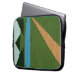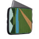 A imagem impressa na bolsa eletrônica é de uma foto de uma tapeçaria original de crochê pendurada na parede, desenhada à mão e Copyright © pela designer publicada Delores Chamblin. A imagem da geométrica única feita à mão, com campo verde, estrada de terra, colinas na encosta da montanha, lago azul e céu é reproduzida na capa de viagem