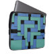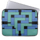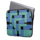 Bolsa para laptop Annex. Annex é um design abstrato criado por Anna M. Asbury e consiste em blocos turquesa e azul em um fundo preto.