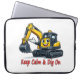 Mascote de escavadeira amarela sorridente em uma capa de laptop estilosa. Frase Mantenha a Calma e Continue Cavando perfeita para amantes de construção, engenheiros e fãs de escavadeiras. Cabe na maioria dos tamanhos de laptop, durável e divertido!