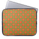 Uma Capa de Neoprene Chic para proteger o seu Laptop (até 15 polegadas), com um padrão estilizado de Escarlet, Rosa Brilho e Bolsas Laranja e Bolinhas em fundo Verde. Parte da coleção 'Poppy Fields' de Posh & Painterly.