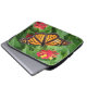 O magnífico Monarca mostrando seu lindo padrão em meio a uma planta vermelha e amarela de Lantana.