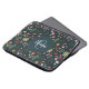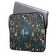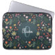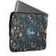 Esta elegante e moderna design de bolsa de laptop floral apresenta flores laranja, verdes e azuis bonitas, com plantas botânicas verdes e um fundo azul marinho, e tem espaço para que você adicione um nome e inicial em uma letra escrita à mão. O dom perfeito do monograma colorido para qualquer amante de flores.
