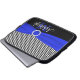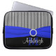 Esta bolsa de laptop listrada preto e branco personalizada com um broche da fita e da jóia do FALSO dos azuis cobaltos tem as caixas de texto para você personalizar com seu próprio nome, monogramas, nome da empresa, ou o outro texto. Se você precisa alguma ajuda que personaliza, envie por correio electrónico por favor niteowlstudio@gmail.com.