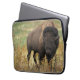Esta bolsa de laptop tem um búfalo pintado nela.