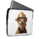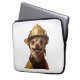 Capa Para Notebook Cachorro que usa um capacete de bombeiro vermelho