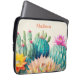 Esta bela bolsa de laptop com ilustração de cactos e um suculento é o presente perfeito para uma mulher ou menina que ama essas maravilhosas plantas. Esta design ousada e bela é definitivamente atraente para os olhos. O nome na bolsa de laptop é personalizável e faria um presente personalizado de excelente.