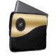 A caixa Dourado e preta do laptop ou do netbook com o design moderno que inclui o elemento colorido ouro do design imprimiu digital no cobrir dos ths. Leve seus eletrônicos portáteis tais como sua netbook, laptop, ou tabuleta no estilo. Projetado para o profissional do negócio do uso da pessoa.