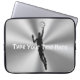 A prata legal personalizou a caixa do basquetebol para laptop de 10 a 15 polegadas com SEU TEXTO. Silhueta do jogador de basquetebol de Techno em um tiro do layup. Proteja seu computador com estas caixas feitas sob encomenda do laptop.
