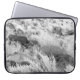As gramíneas floridas pálidas cobrir um declive com palha de basalto nesta fotografia a preto e branco em Albuquerque, Novo México. As grandes rochas escuras e gigantes espiam sobre a vegetação circundante. Várias das rochas de lava no primeiro plano formam uma diagonal forte do canto inferior direito em direção ao canto superior esquerdo. O campo de Basalt é uma foto de contrastes: preto, duro, rochas velhas e gramíneas brancas, macios e jovens. Fotografia a preto e branco de 35 mm. Copyright © 1992 Claire E. Skinner. Todos os direitos reservados.