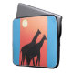 Esta manga de computador foi projetada com a minha representação de duas girafas silenciadas por um pôr do sol laranja.