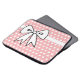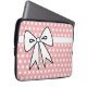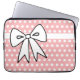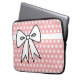 Um lindo padrão de bolinhas rosa e branco e um grande laço dão a esta bolsa de laptop um estilo retrô. Esta capa de laptop é ótima para mulheres, meninas, adolescentes, escola, trabalho, faculdade, presente, etc... O design é de arte original.