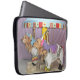 Esta bolsa de laptop caracteriza os retrievers dourados vestidos como cavalos do carrossel em um carrossel.