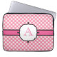 Gingham dá este estilo retrô bolsa de laptop. Personalize este saco de laptop mudando a letra do monograma para atender às suas necessidades. Esta bolsa de laptop é excelente para mulheres, moças, adolescentes, professoras, escolas, trabalho, faculdade, etc... A design é de arte original.