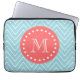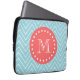Capa Para Notebook Chevron azul e coral com monograma feito sob