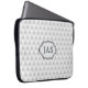Bolsa de laptop monogramada em um padrão de colmeia de cinza. Use a opção Personalizar para adicionar suas iniciais. Use a opção Personalizar se precisar reinserir o bloco de texto ou se quiser alterar a fonte, o tamanho da fonte ou a cor.