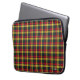 Manga de neopreno resistente à água monogramada com um padrão de xadrez escocês vermelho, amarelo e verde florestal brilhante, a partir de 1850. Tartan tradicional da família Clan Buchanan, incluindo o MacCormack sept. Três tamanhos disponíveis, para comprimidos e laptop.