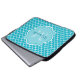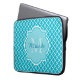 Adicione uma vibração moderna sofisticada ao seu estilo pessoal com esta turquesa aqua de tendência e padrão quatrefoil branco 15'' de bolsa de laptop com um elegante monograma. Personalize este design de na moda, adicionando seu nome a um inicial monograma.