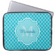 Capa Para Notebook Clássica Turquesa Azul Quatrefoil Monograma e Nome