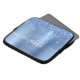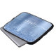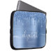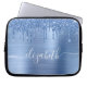 Bolsa de laptop cônica personalizada e giratória com brilho azul esmaecido pingando um fundo azul de folha metálica falsa. Monograma com seu nome em um roteiro branco de tendências na moda com baloiços.