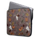 Esta elegante bolsa de laptop de outono apresenta ilustrações desenhadas à mão a tinta preta, apresentando uma cena da Colheita Ocidental com crânios de vaca, rosas, abóboras, folhas de outono, ramos e bagas, tudo com um elegante esquema de cores de queda. Fundo roxo de ameixa.