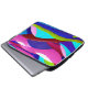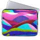 Uma paisagem abstrato colorida de colinas e um oceano de cores rosa, roxo, azul, verde e ciano.