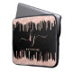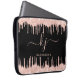 Girly, Elegante, Sylish, Light Rosa Dourado Glitter Drips 2 MonogramScript personalizado nome personalizado monograma bolsa de laptop em preto. Apresentando um quadro de gotejamento de rosa rosa claro dourado de luxo moderno, uma fonte grande de dois (2) caracteres de script de monograma com letras manuais com pestanas (em iniciais de tamanho grande) e um nome de fonte serif em rosas claro sobre fundo preto. É fácil personalizá-lo. presente feminino excelente para namorada, mãe, aniversário, doce festa de aniversário 16, chá de panela, escritório, escritório doméstico, trabalho profissional e para qualquer pessoa que goste de coisas brilhantes bonito e brilhantes.