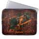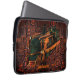Este design steampunk tem um trem verde-vapor florestal com deco de arte floresce em cobre.