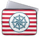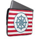 Design náutica com decoração de bússola em fundo listrado vermelho e branco