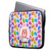 Esta manga colorida de laptop/tablet está pronta para o seu nome ou outro texto personalizado (opcional). Criado com uma coruja rosa doce sentada em um galho contra um pano de fundo de folhas coloridas misturadas Apenas edite seu texto e escolha o tamanho do dispositivo no menu suspenso.