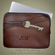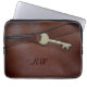 Capa Para Notebook Couro Castanho Faux com Chave e Monograma