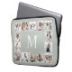 This chic laptop sleeve offers a personalized touch with its soft, light sage green background, perfect for showcasing your cherished memories. It features a modern photo collage layout, presenting multiple square frames around a prominent central monogram. This stylish design allows you to carry your device with both protection and a unique, personal flair, making a statement wherever you go.