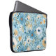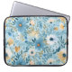 Bonito marfim e design abstrato de prado azul-margarida em um fundo azul macio.