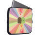O saco feito sob encomenda do laptop com a ilustração colorida do kawaii que caracteriza um cone bonito do sorvete com as três sabores e cerejas felizes na parte superior no arco-íris coloriu o fundo.