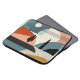 Uma paisagem abstrato de uma cena do deserto com linhas e formas em tons de marrom, laranja, turquesa, bege, bronzeado e preto.